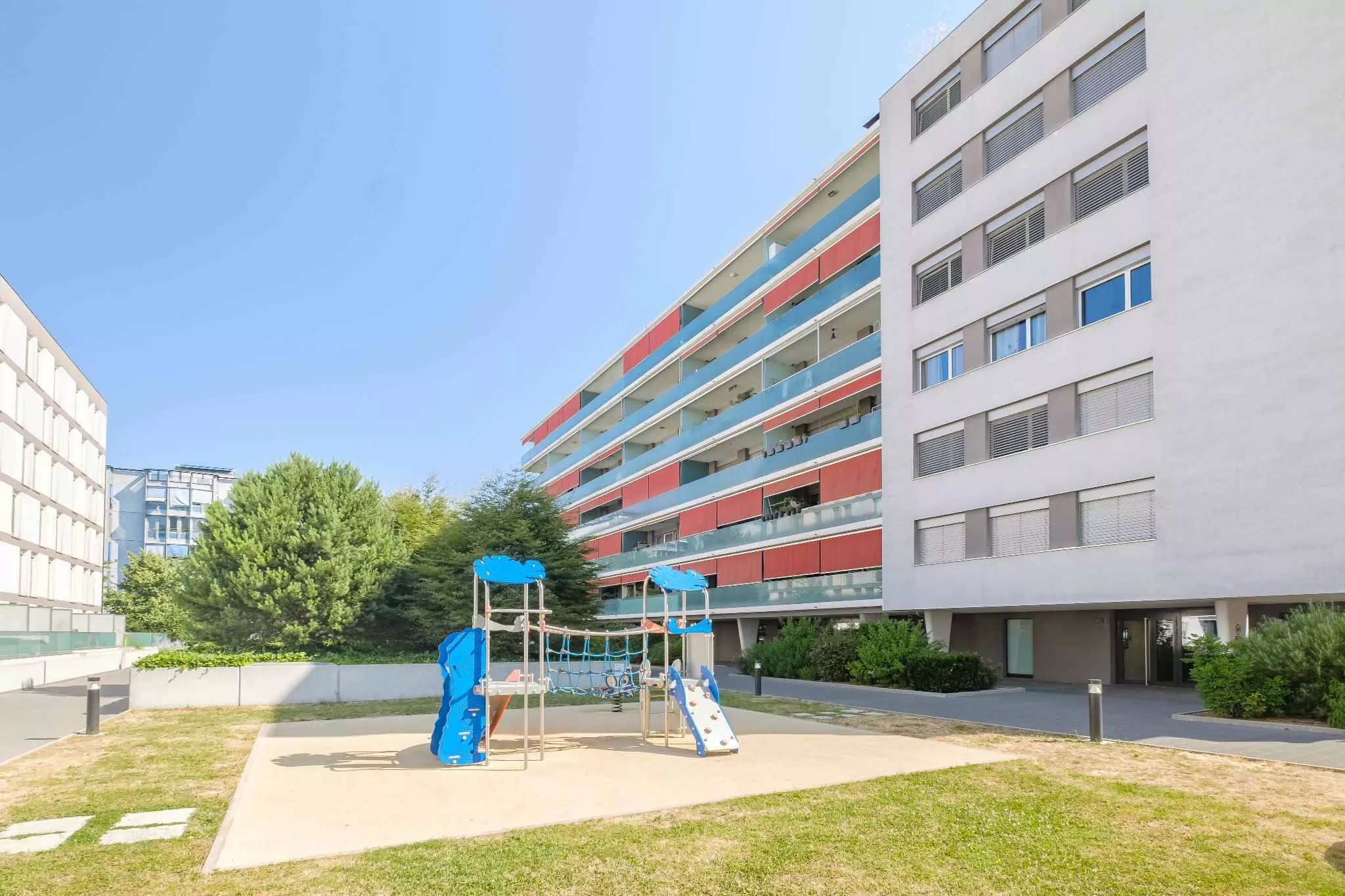 Bel appartement traversant au 5ème étage d'une surface PPE de 87m², situé dans un immeuble construit en 2014 sur la commune de Lancy.