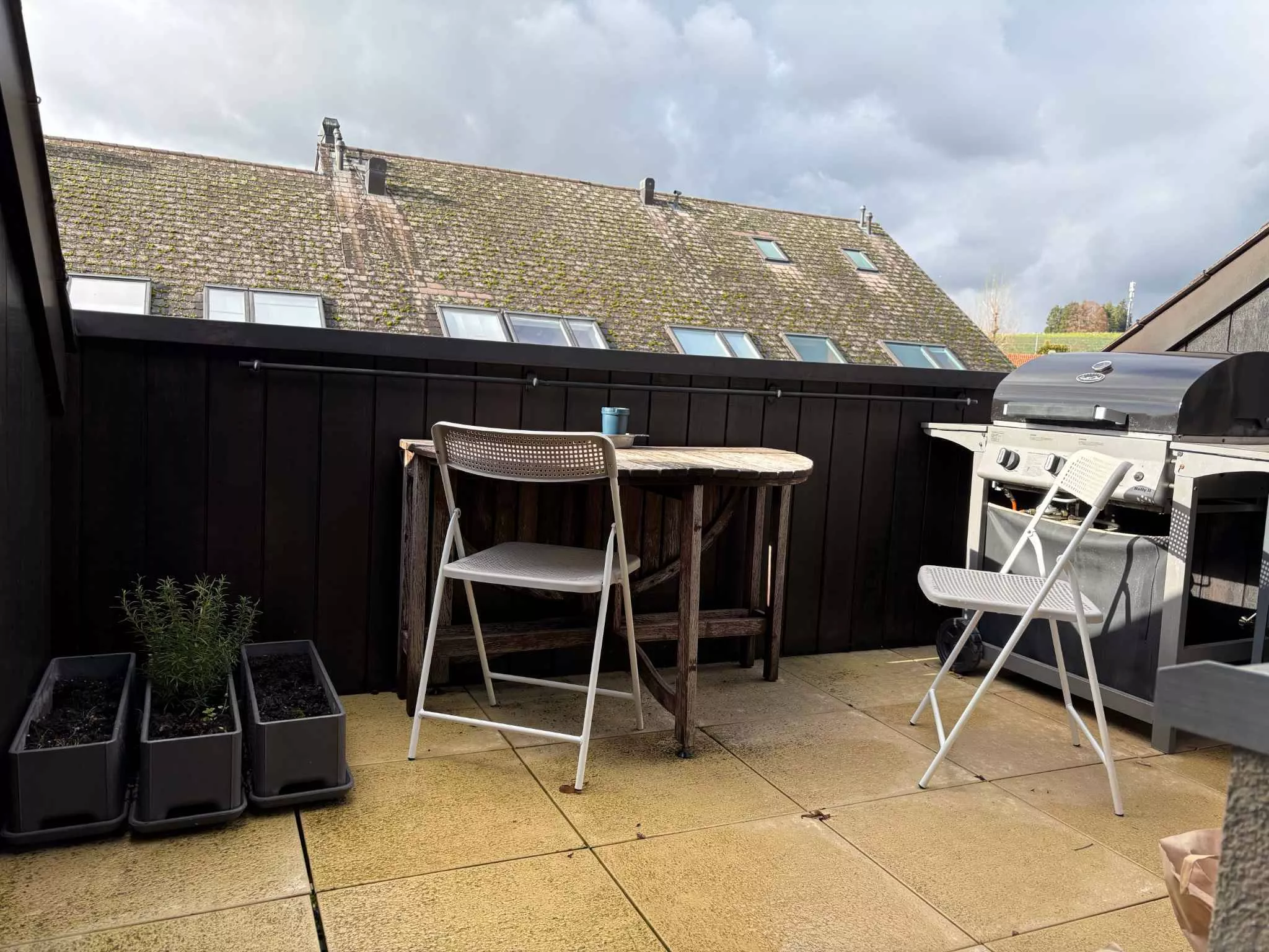 état avec cheminée et terrasse.