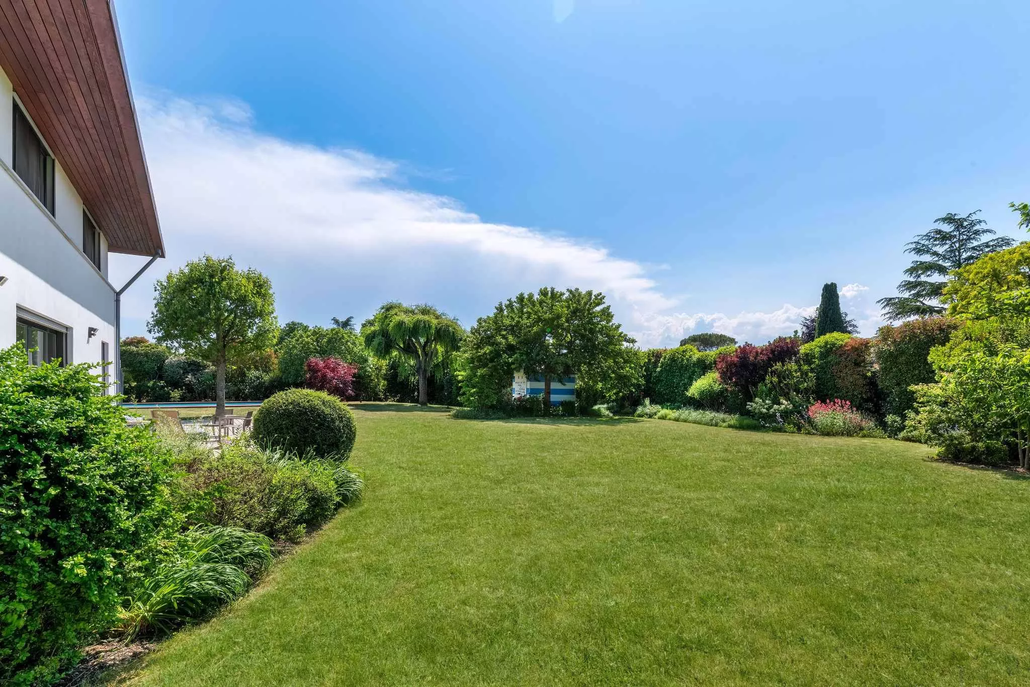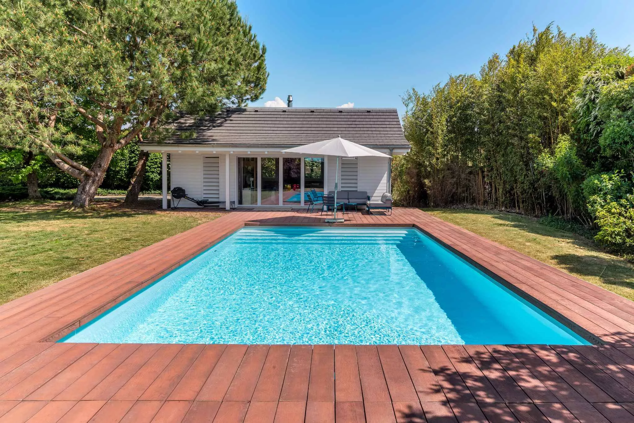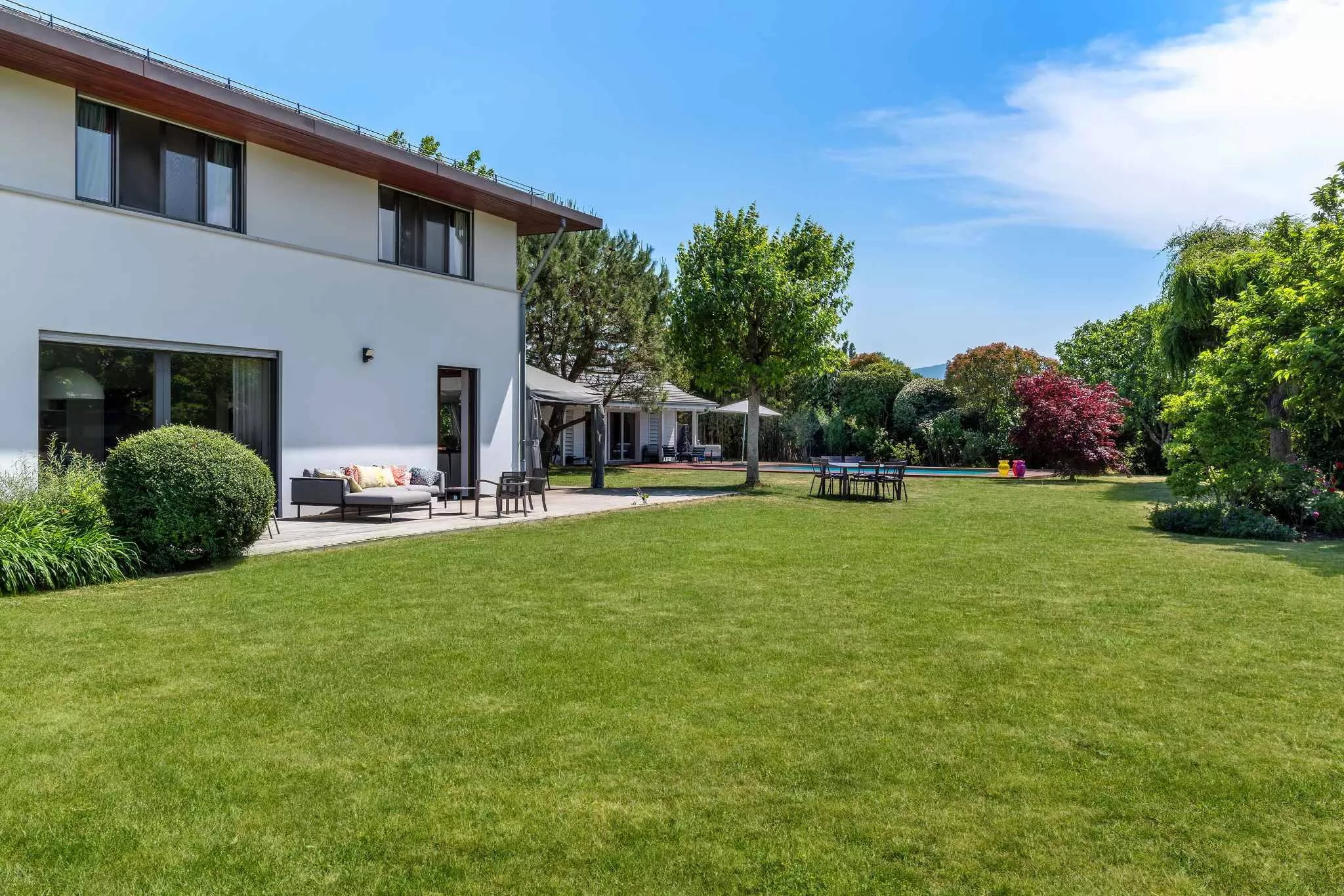 Édifiée sur une belle parcelle sans vis-à-vis, la propriété dispose d'un grand jardin agrémenté d'une piscine et d'un pool house.