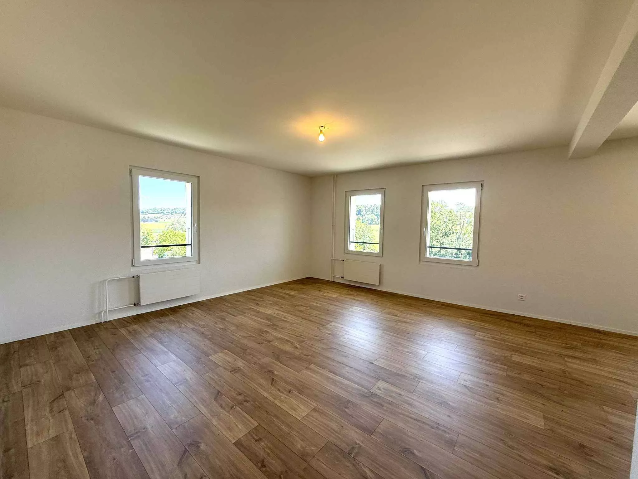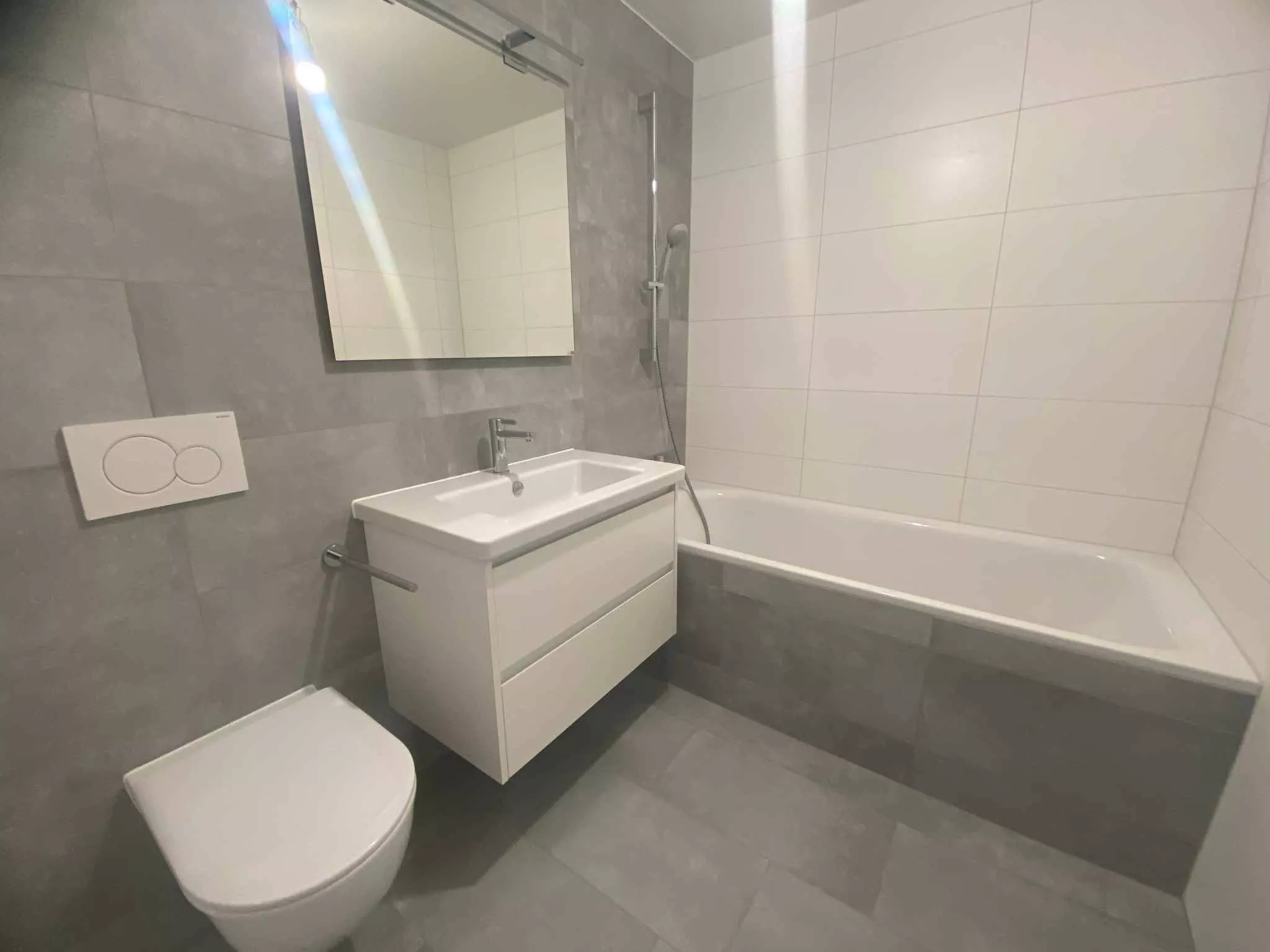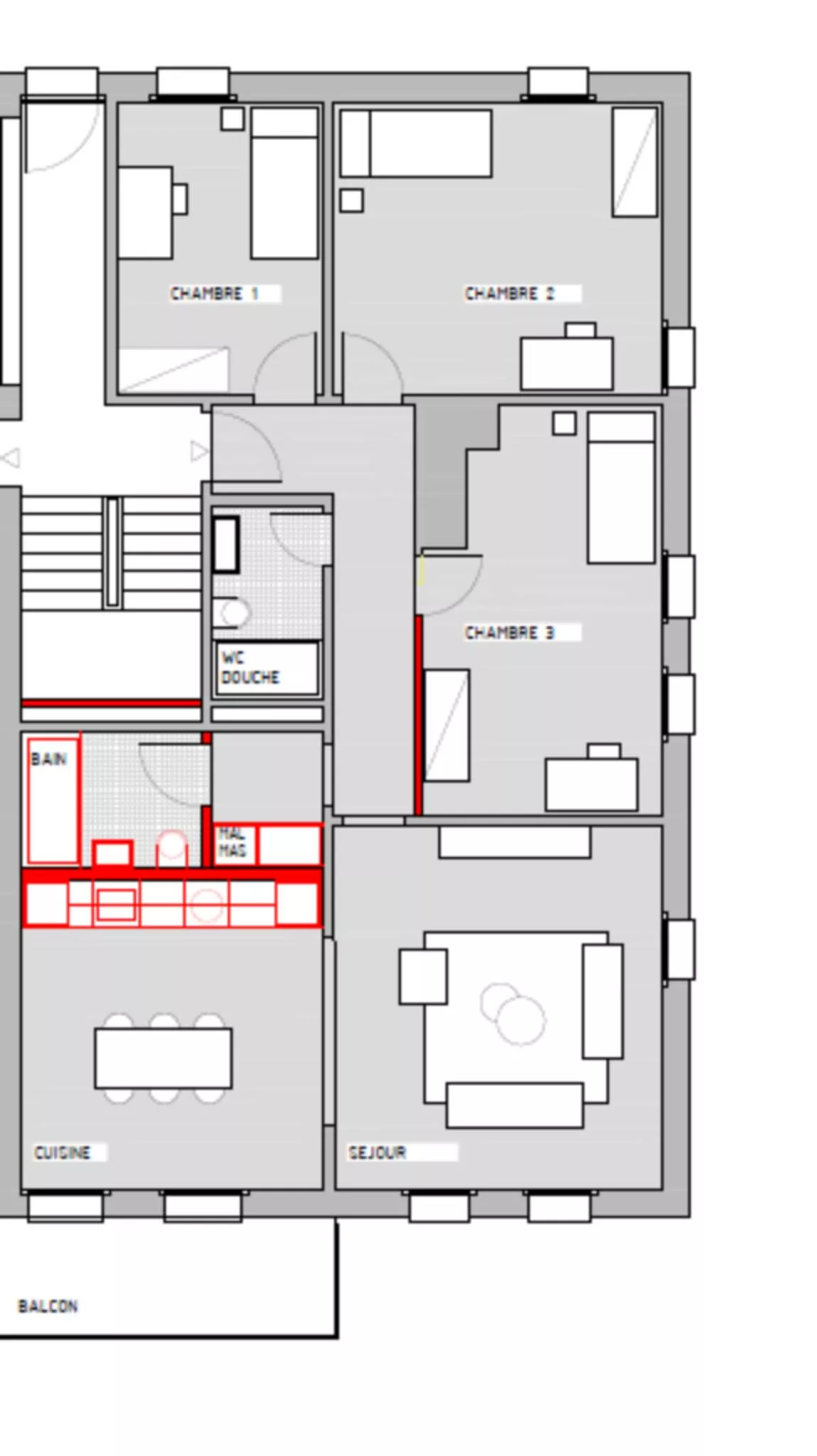 Rénové avec goût et avec des matériaux contemporain, parquet au sol, 3 chambres à coucher, 1 salle de douche, 1 salle de bains, colonne de lavage/séchage, cuisine ouverte entièrement équipée avec de l'électroménager Siemens, donnant sur un grand séjour/salle à manger, prolongé par un balcon, vue dégagée sans vis-à-vis.